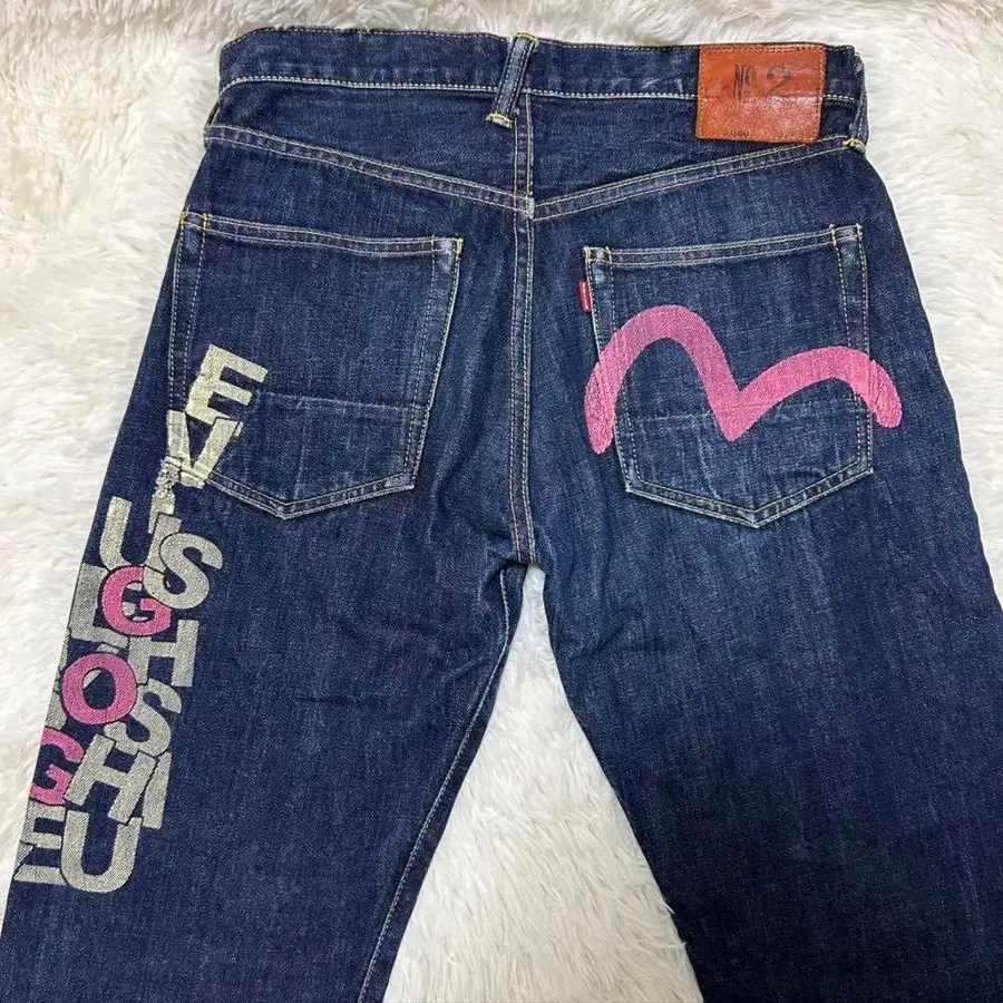 2000s Archive EVISU Pink 대흑 Denim Pants