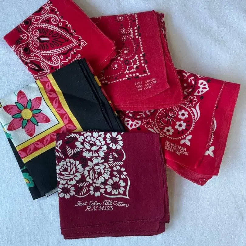 미국제 중심의 빈티지 반다나 레드 계열 모듬 세트입니다.