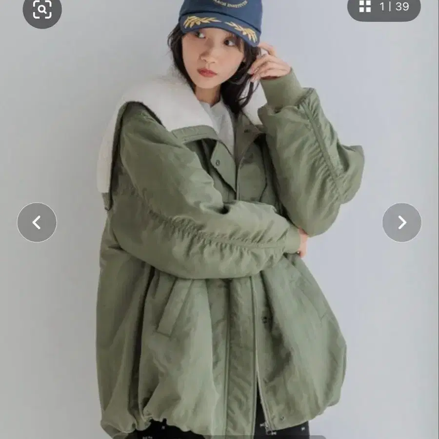 택 포함 새상품 emmi 후드 부착 2way 봄버 블루종 카키 사이즈 1