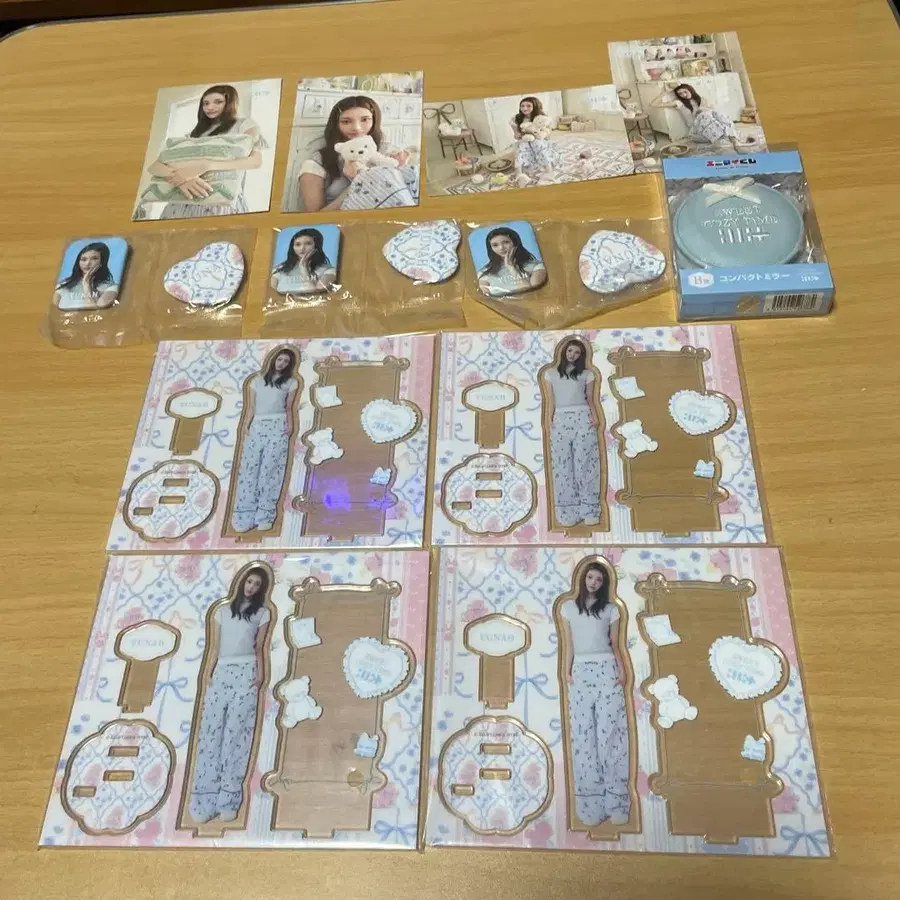 에니마이 복권 ILLIT 아이릿 B상 컴팩트 거울 미개봉 유나 아크릴 스탠드 4개 캔뱃지 3개 ⚠️ 추가 클리어 파일 3개 덤 엽서 4장 A상에 들어있던 것입니다. 낱개 판매하지 않습니다. 또한 가격 인하도 하지 않습니다. 묶음 판매만 할인합니다.