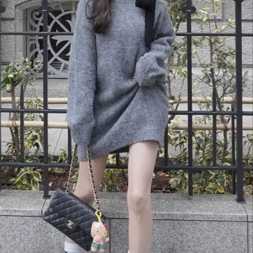 다리치 오프숄더 니트 미니 원피스