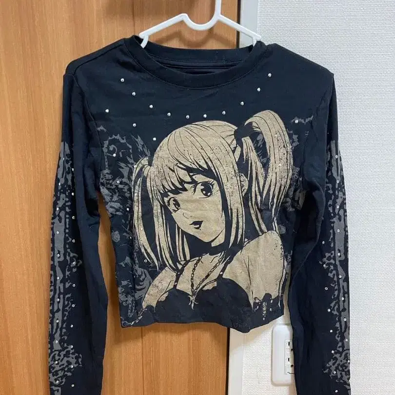 애니메이션 캐릭터 크롭T셔츠 긴팔 블랙