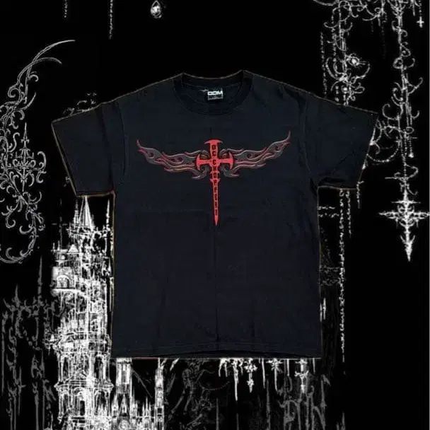 프론트와 백에 빨간색 십자가 그래픽이 들어간 블랙 T셔츠입니다!