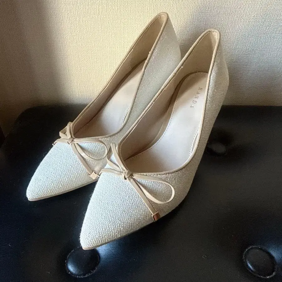 란다 RANDA 리본 베이지 스틸레토 펌프스 화이트