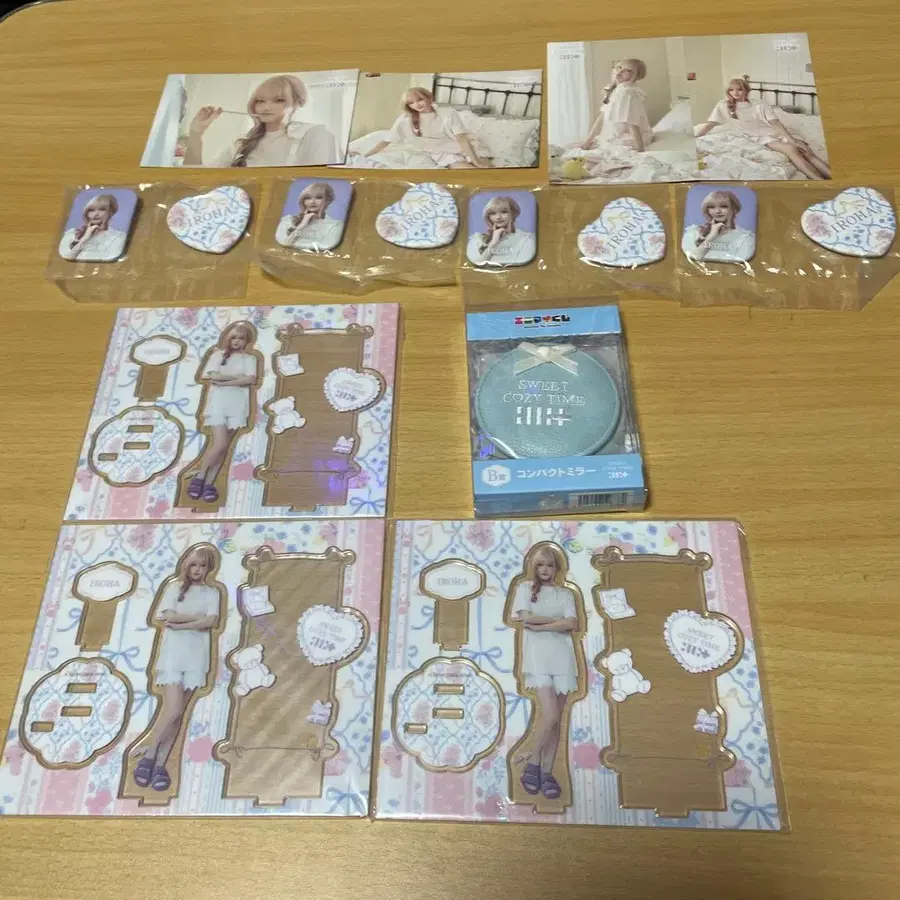 에니마이 복권 ILLIT 아이릿 B상 컴팩트 거울 미개봉 이로하 아크릴 스탠드 3개 미개봉 캔뱃지 4개 ⚠️ 추가 클리어 파일 5장 덤으로 엽서 4장 A상에 포함되어 있던 것입니다. 낱개 판매는 하지 않습니다. 또한 가격 인하도 하지 않습니다. 묶음 판매만 할인합니다.