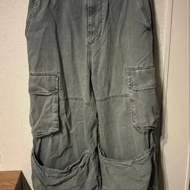 zara 카고 팬츠 몇 번 착용했습니다. 원단 느낌은 얇지도 두껍지도 않은 느낌입니다. 무릎 부분은 포켓처럼 되어 있어 귀여운 디자인입니다. 구제 의류 밀리터리