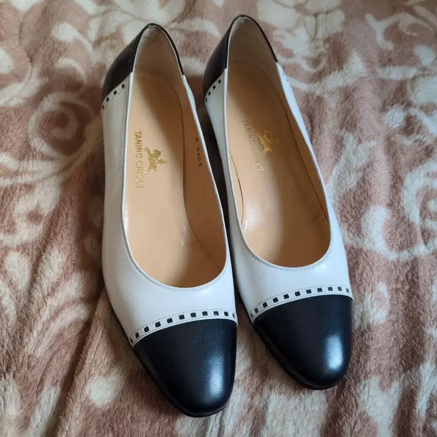 자동 번역되었어요. 원문보기지금은 사라진 이탈리아의 희귀 고급 브랜드, TANINO CRISCI의 가죽 펌프스, 화이트와 블랙의 토캡 디자인, 스터드 장식의 펌프스.