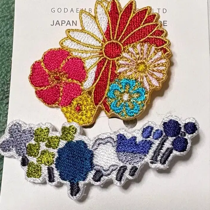 sou.sou의 자수 장식입니다. 꽃 모티브 4개 세트. 1~2회 정도 사용했으며, 거의 인테리어로 즐겼습니다. 개수가 늘어나서 판매합니다. 잘 부탁드립니다.