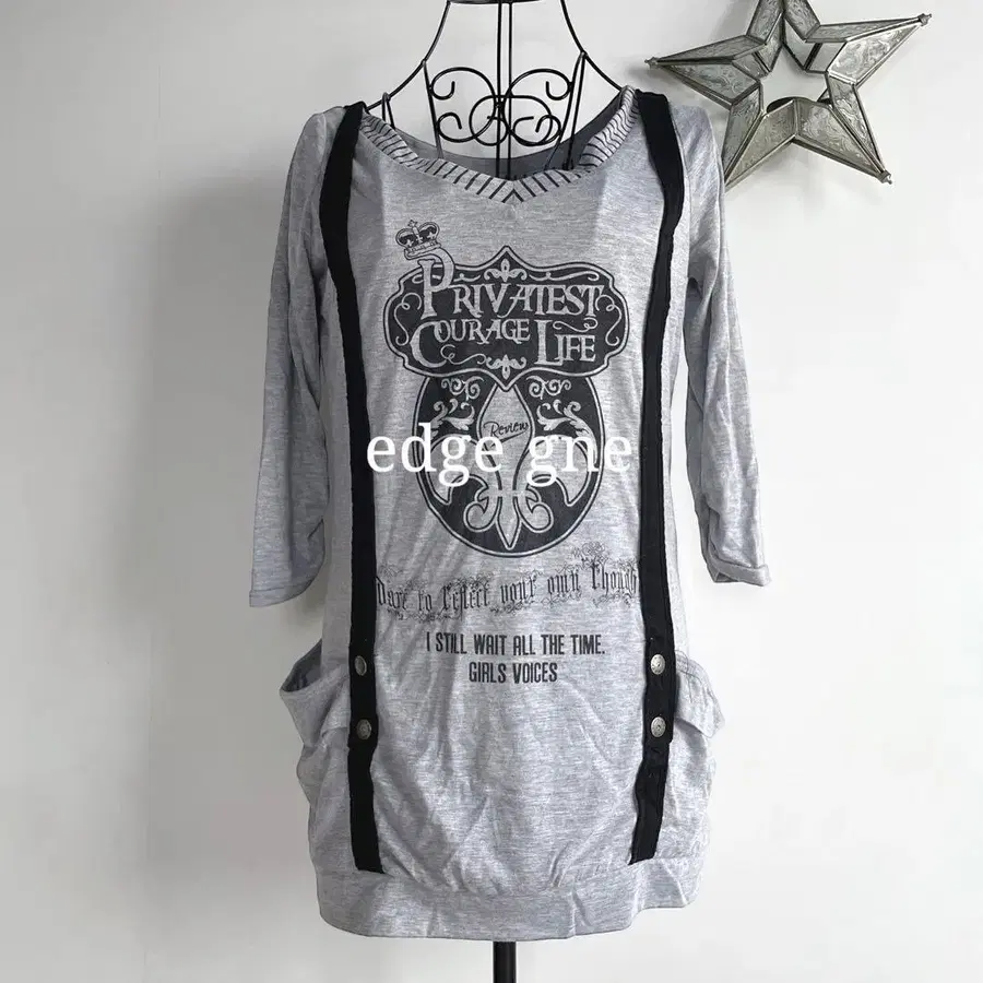 edge gne 롱T 그레이 M 사이즈 Y2K 7부 소매 락 테이스트