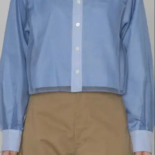 [ 디자인 ] HYKE(하이크)의 셔츠. 옥스퍼드 셔츠에 폴리에스테르 소재의 시어 셔츠가 레이어드된 아이템. 트렌디한 크롭 기장에 적절한 시어 소재가 매력적입니다. 적당한 탄력이 있는 원단이 봉긋한 구조적인 실루엣을 연출합니다.
