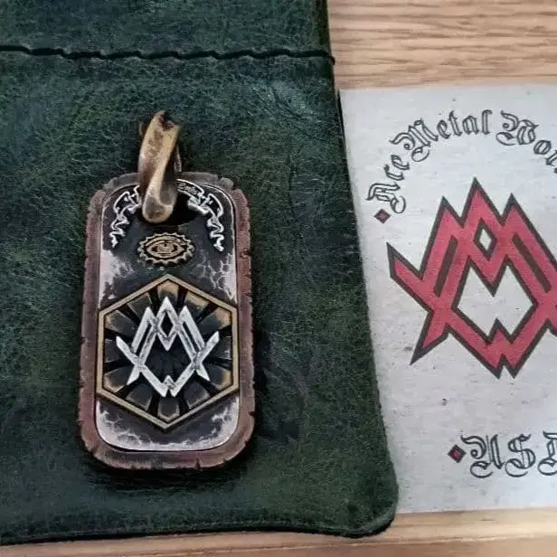※ 스타 링 기어 디자이너 릭의 2nd 라인이므로 스타 링 기어의 이름을 빌렸습니다. 에이스 메탈 웍스 ACE METAL WORKS 원오프 도그 택 실버 x 코퍼 x 브라스 부속품 완비(파우치, 개런티)