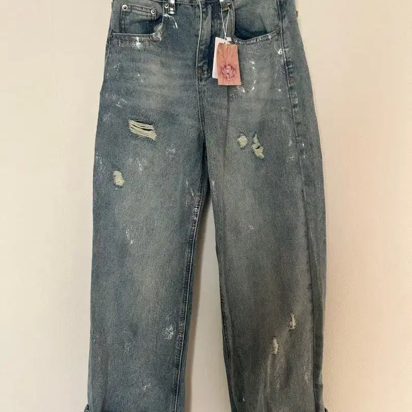 BLACKUP 탈리 데미지 와이드 데님 팬츠
