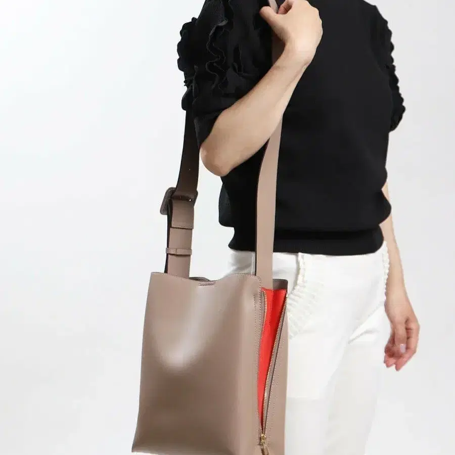 베이지(오크) 색상이며 지퍼 안쪽은 빨간색 또는 오렌지색입니다.