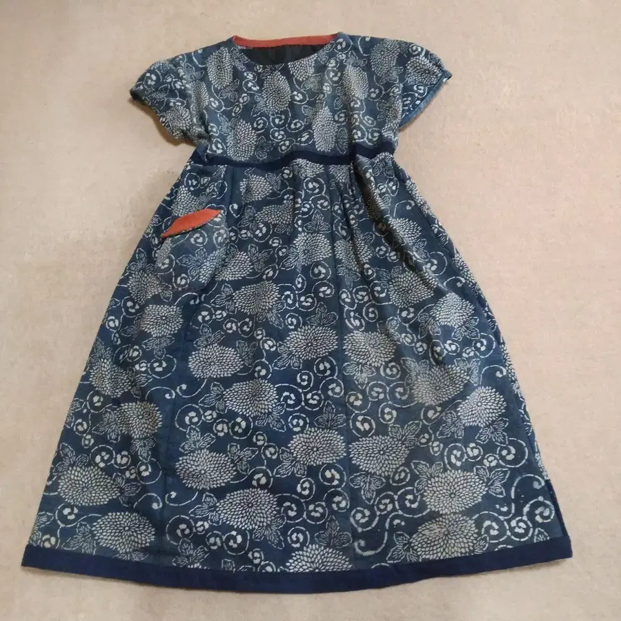 새해 복 많이 받으세요. 올해도 좋은 한 해가 되기를 바랍니다. 봐주셔서 감사합니다. 염색 원피스 부드러운 원단으로 만들었습니다. 초롱 소매로 귀엽게, 또 긴팔 겉옷 등을 걸치고 외출하실 때 어떠신가요? 포켓 인형은 포함되어 있지 않습니다. 총장 약 110cm 허리둘레 약 52cm 빈티지 원단 리메이크이므로 기성품처럼 만들 수는 없습니다. 빈티지 원단에 이해가 있는 분께 부탁드립니다. 작게 접어서 발송해 드립니다.