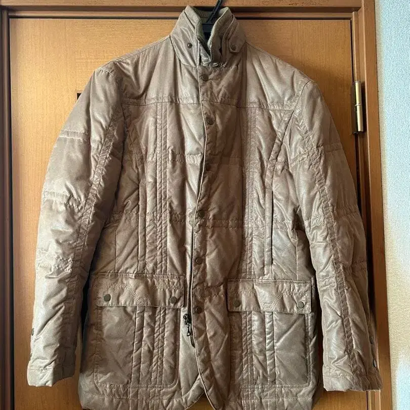 인터메조의 베이지 스탠드 카라 다운 자켓입니다. 충전솜은 다운 85%, 페더 15%를 사용했습니다. 스냅 버튼이 있어 스타일리시합니다. 겉감은 폴리에스테르임에도 불구하고 가죽 같은 분위기입니다. - 색상: 베이지 - 디자인: 다운 자켓 - 버튼: 스냅 버튼 - 스타일: 스탠드 카라 - 뒷모습 디자인: 심플한 백 디자인 방문해 주셔서 감사합니다. 컬러 - 브라운 계열 소재(충전재) - 다운, 페더 중고품이므로 이해해 주시기 바랍니다.