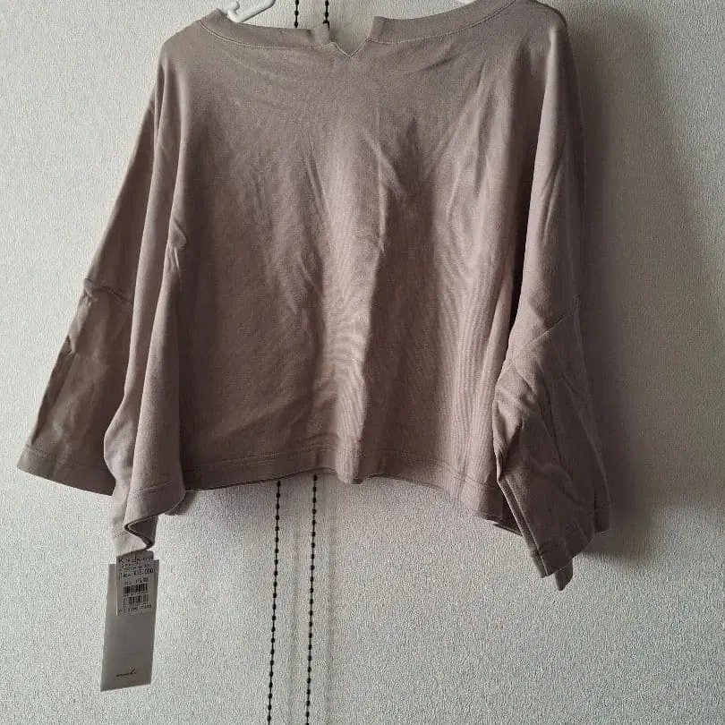 새상품 보더 디자인 소매 절개 크루넥 상의 7부 소매