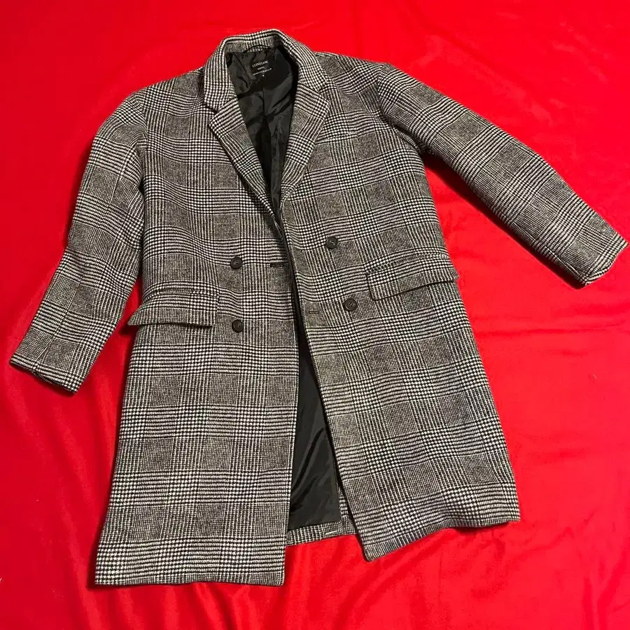 블랙 화이트 체크 무늬 더블 브레스트 체스터 코트. - 색상: 블랙 화이트 체크 무늬 - 스타일: 더블 브레스트 - 버튼 개수: 2개 - 소매 버튼: 3개 - 소재: 울 혼방 (추정) 방문해 주셔서 감사합니다. 사이즈 - M