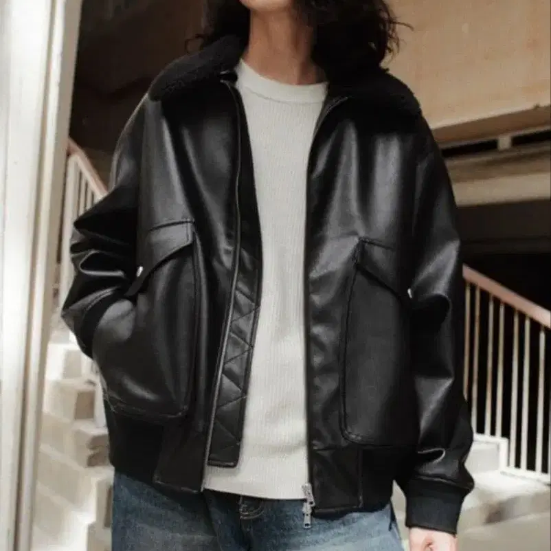 DETACHABLE BOA ARTIFICIAL GRAIN FLIGHT BLOUSON
