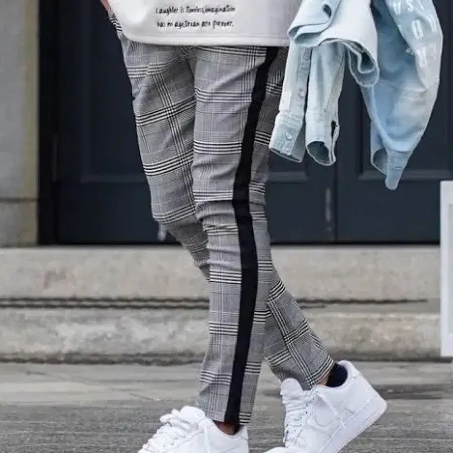 체크 무늬 스키니 팬츠, 사이드에 블랙라인이 특징. - 디자인: 체크 무늬 - 컬러: 그레이/블랙 - 스타일: 스키니 팬츠 - 특징: 사이드에 블랙라인 방문해 주셔서 감사합니다. 사이즈 - XS(SS)
