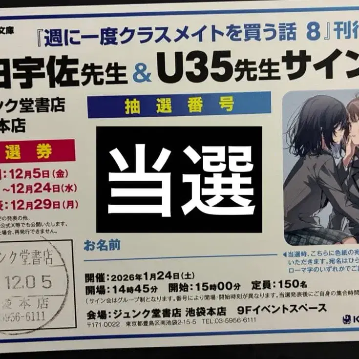 일주일에 한 번 반 친구를 사는 이야기 사인회 당첨권