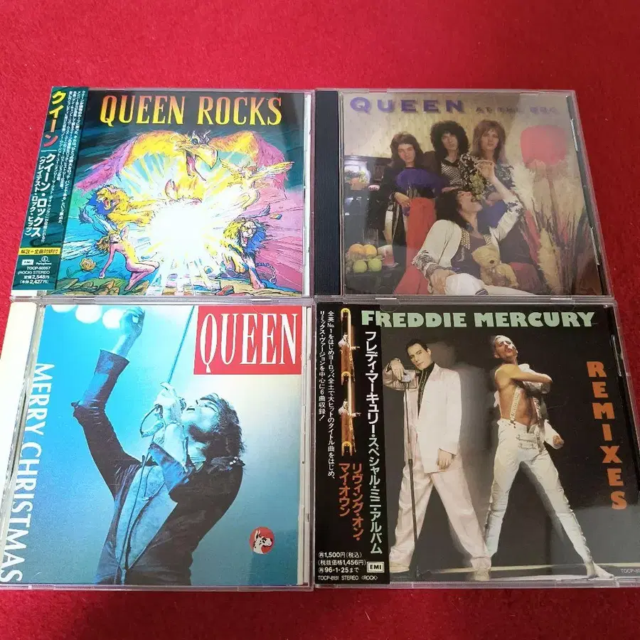 퀸, 프레디 머큐리 4CD 세트 1. 퀸 록스 양호 2. 퀸 MerryChristmas 일본 국내반? 반 얼룩, 설명서 얼룩 있음 3. 퀸 at BBC 수입반 양호 4. 프레디 머큐리 일본 국내반 미니 앨범 ⚠ 샘플반 설명서 약간 얼룩 잘 부탁드립니다(^^)