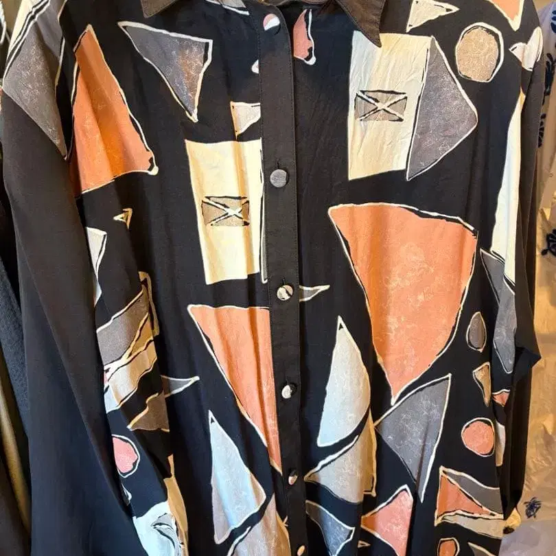 빈티지 셔츠 자켓 올 패턴 바틱 패턴 버튼 레트로