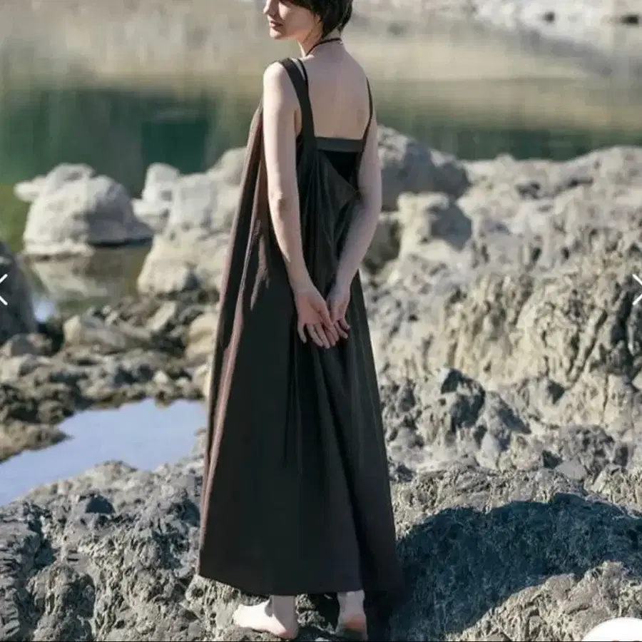 MARIHA 절개 원톤 안감 슬리브리스 플레어 롱 원피스
