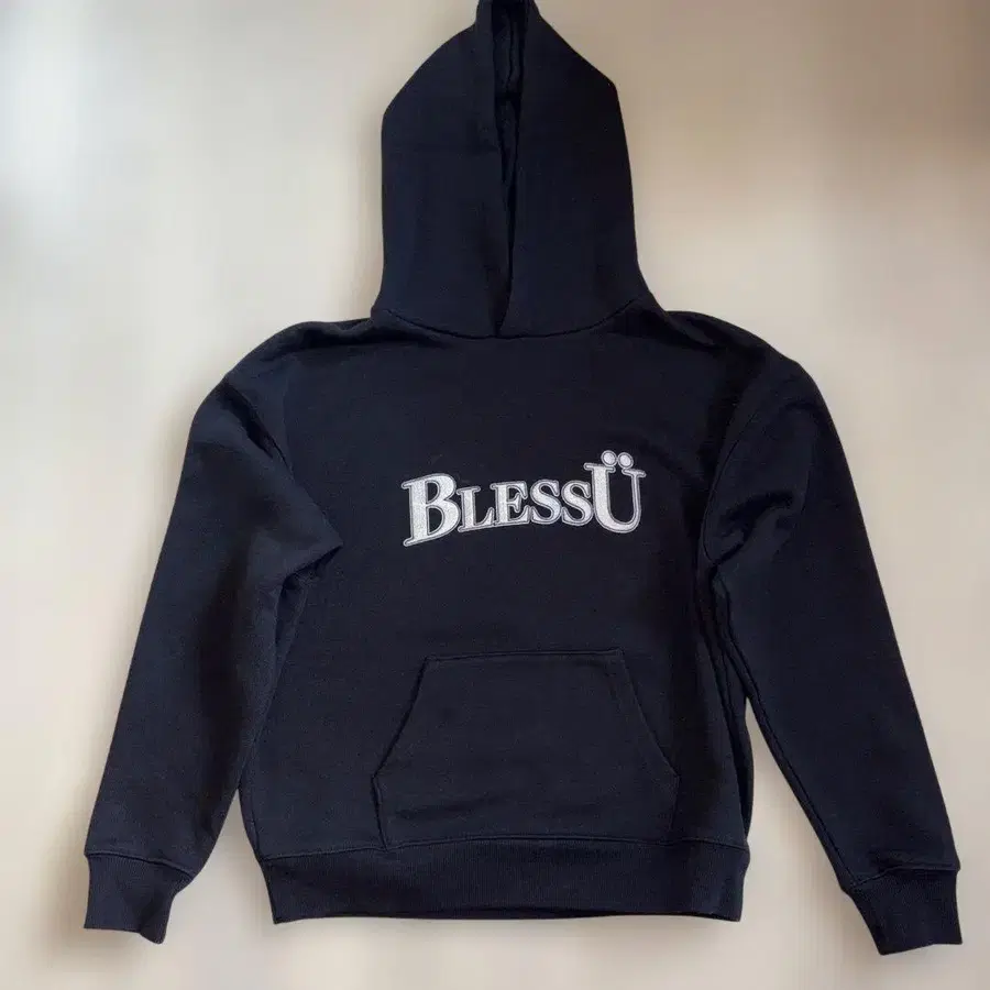 프론트에 BlessU 자수가 들어간 블랙 후드티. - 브랜드: BlessU - 색상: 블랙 - 디자인: 프론트 로고 자수 - 택: BlessU 방문해 주셔서 감사합니다. 사이즈 - S