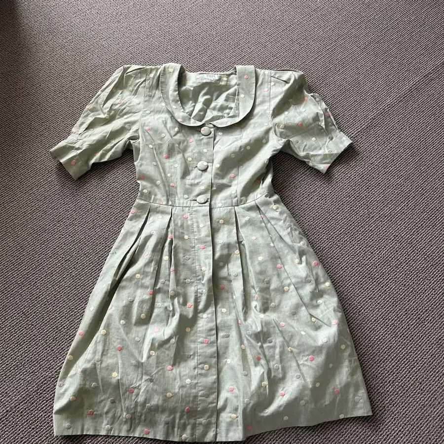 그린 색상의 도트 무늬, 프릴이 달린 안감의 반팔 원피스. - 브랜드: FOXEY - 사이즈: 40 - 색상: 그린 - 디자인: 도트 무늬 - 특징: 프릴이 달린 안감 방문해 주셔서 감사합니다.