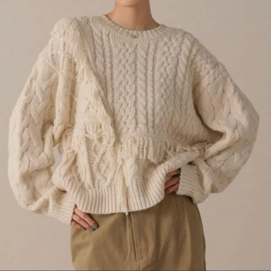 내추럴한 분위기가 시즌 무드를 높여주는 케이블 프린지 니트입니다.