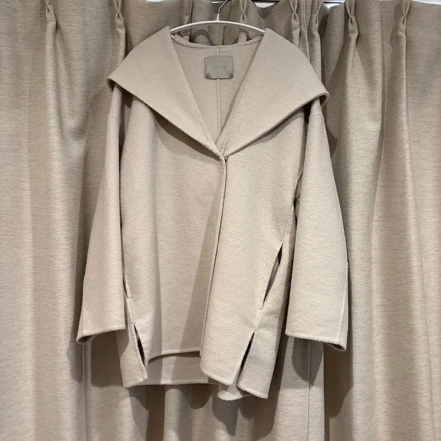 안피로 울 혼방 리버 후데트 코트 [발수] 베이지 S