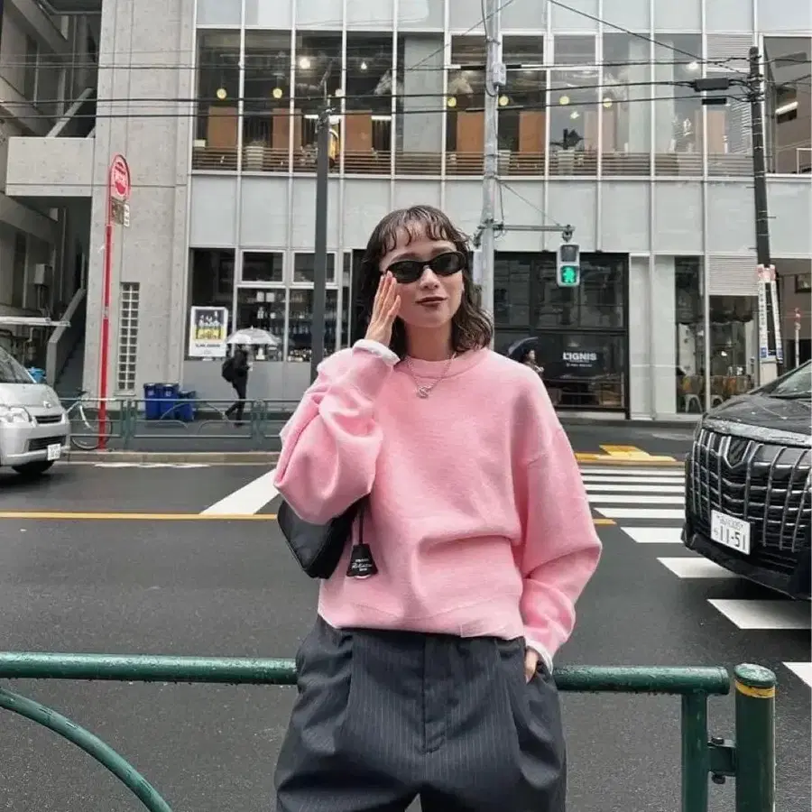 핑크 케이블 짜임 니트 스웨터
