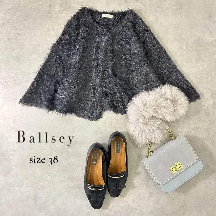 BALLSEY 특유의 품격 있는 분위기가 매력적인 페더 니트 가디건입니다. 뭉실한 털에 은은하게 짜인 라메가 빛을 받아 부드럽게 반짝이며, 심플하면서도 여성스러운 화려함을 느끼게 하는 아이템입니다. ■ 사이즈 표기: 38 ( M 사이즈 상당 ) ■ 평평하게 놓았을 때 치수 측정 총장: 45cm → 어깨에서 팔까지 자연스럽게 떨어지는 디자인으로 답답함 없는 착용감 가슴 너비: 51cm → 페더 니트의 두께를 포함해도 적당히 여유가 있어 편안한 느낌 기장: 38cm → 허리~약간 위쪽의 짧은 기장으로 스타일업 하기 좋은 밸런스 ※ 가슴 너비에 여유가 있어 평소 36~38 사이즈 분들께 특히 추천합니다. ■ 색상 차콜 그레이 계열 블랙에 가까운 차분한 그레이 색상으로 너무 달콤하지 않고 성숙한 인상을 줍니다. ※ 빛의 각도나 보는 환경에 따라 색감의 차이가 있을 수 있습니다. ■ 소재 나일론 57% / 폴리에스테르 43% 털이 있는 페더 소재로 매우 가볍고 뭉실하고 부드러운 촉감입니다. 까끌거림은 거의 느껴지지 않으며, 걸치는 순간 공기를 머금은 듯한 가벼움이 있습니다. 라메 실은 은은하기 때문에 평소 착용부터 격식 있는 자리까지 폭넓게 활용할 수 있습니다. ■ 디자인 실루엣 앞 여밈이 없는 겉옷 타입 돌먼 슬리브 스타일의 넉넉한 실루엣 숏 기장으로 원피스나 하이웨스트 하의와 잘 어울림 BALLSEY 특유의 고급스럽고 세련된 분위기 ■ 상태 착용감은 적으며 눈에 띄는 얼룩이나 데미지는 보이지 않습니다. 전반적으로 깨끗한 인상이지만, 소재 특유의 털 느낌이나 질감에 대해서는 ( 어디까지나 중고품이므로 세세한 부분에 이해가 되시는 분께 추천합니다. ) ■ 코디네이트 이미지 원피스 겉옷으로 여성스럽게 데님 + 펌프스로 성숙 캐주얼하게 깔끔한 팬츠와 함께, 가벼운 외출이나 식사 모임에도 ◎ #BALLSEY #볼지 #투모로우랜드 #페더니트 #라메니트 #니트가디건 #숏기장 #깔끔한코디 #성숙페미닌 #38사이즈 #M사이즈상당 #가을겨울코디
