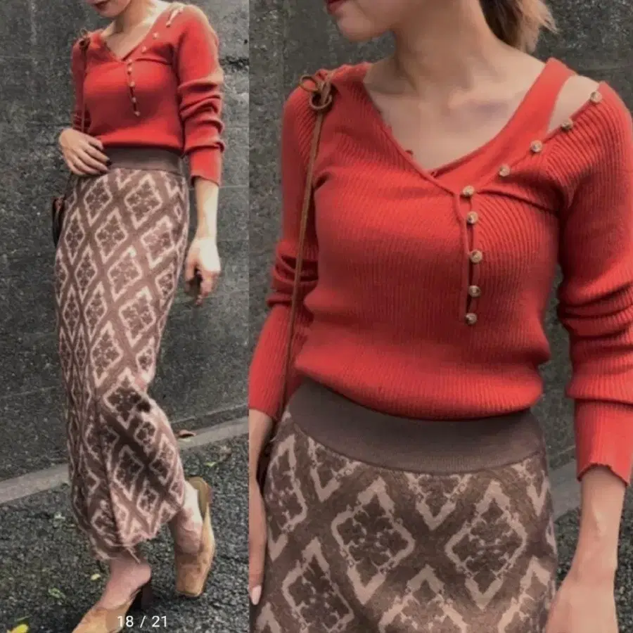 브라운 오부 소매 니트
