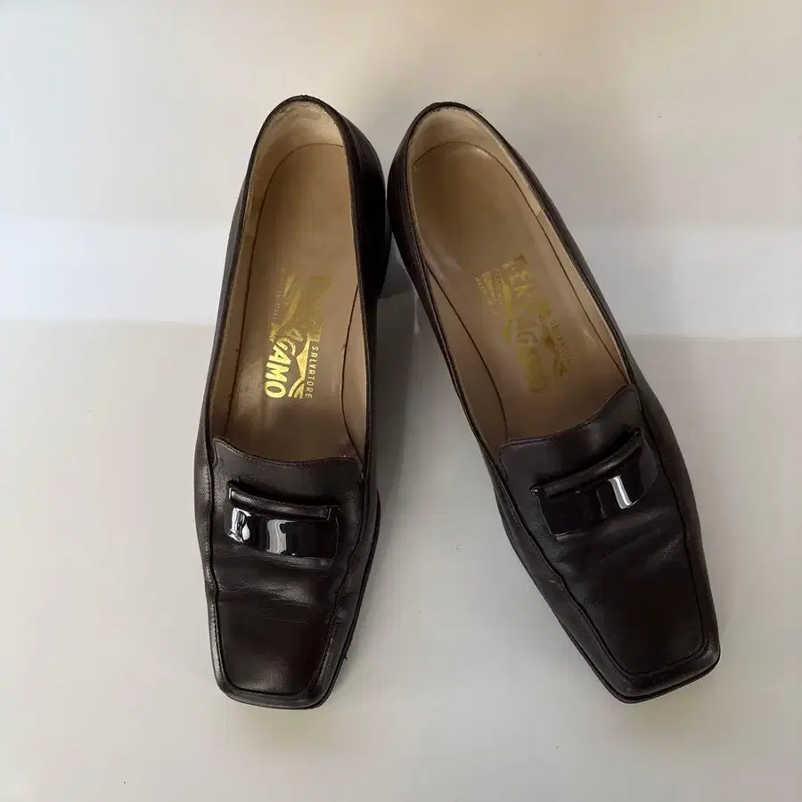 페라가모 브라운 펌프스 중간 굽
