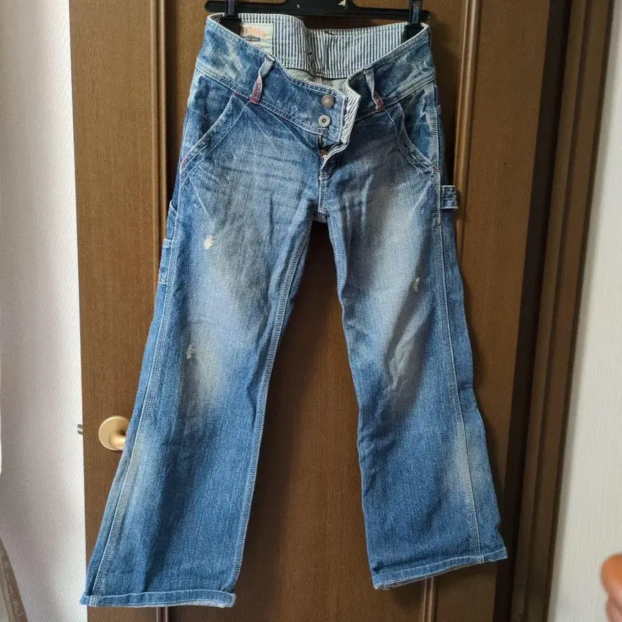 클리어 라이트 블루 데미지 가공 와이드 레그 데님