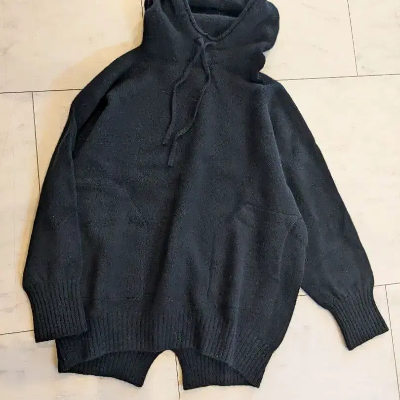 아듀트리스. 후드 부착 블랙 풀오버 니트 스웨터