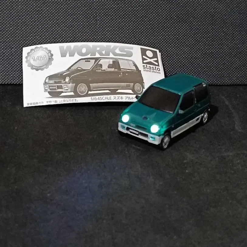 SUZUKI ALTOWORKS 헤드라이트 점등 버튼 배터리 CR1220 1개 사용 배터리 교환 가능 타이어 회전, 주행 가능 색상은 포레스트 그린 + 2톤 뒷면의 스위치로 라이트 온/오프 가능 스타스토 스탠드스톤즈 standstones stasto M-CL11V