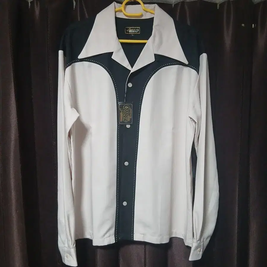 연한 핑크와 블랙 컬러의 전환이 돋보이는 50년대 셔츠입니다.