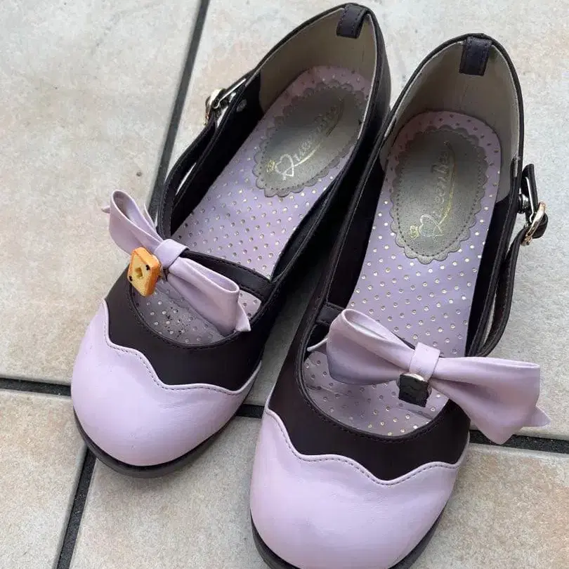 핑크와 브라운의 리본 포함 플랫슈즈, 합성 피혁 소재로 귀여운 디자인. - 색상: 라벤더와 브라운의 콤비네이션 - 디자인: 리본 포함 플랫슈즈 - 소재: 합성 피혁 - 사이즈: M 방문해 주셔서 감사합니다. ⚠️ 스트랩 가운데 리본 부분의 쿠키가 한쪽 떨어져 있습니다. 리본은 탈부착 가능. ⚠️ 괜찮으신 분만 부탁드립니다. 로리타 패션에도 잘 어울립니다! 사이즈 - 23cm