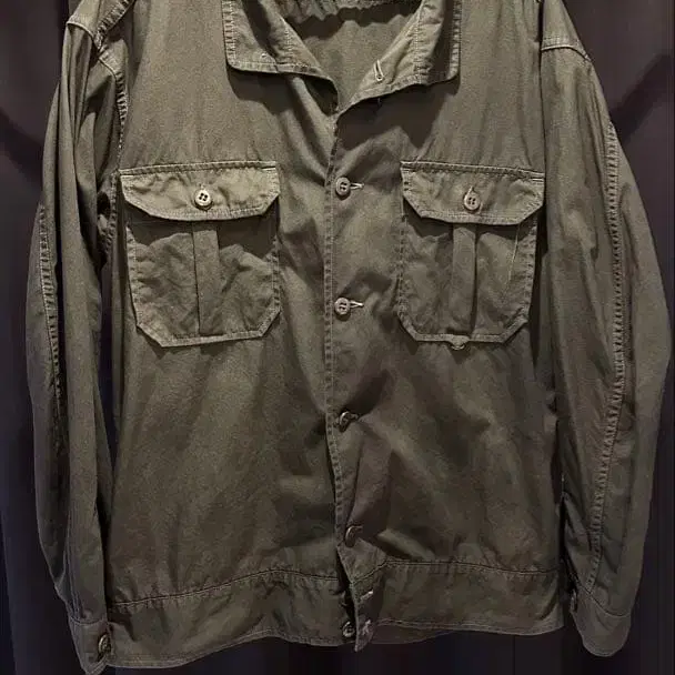 올리브 그린 밀리터리 자켓, 가슴에 2개의 포켓이 있어 실용성이 뛰어납니다. - 색상: 올리브 그린 - 포켓 수: 가슴 포켓 2개 - 스타일: 밀리터리 자켓 - 소재: 코튼 혼방 방문해 주셔서 감사합니다. 사이즈 - L