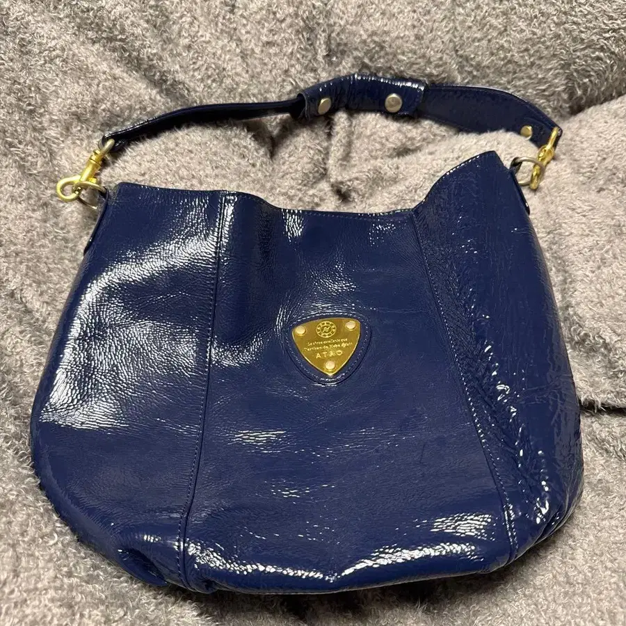 네이비 색상의 가죽 숄더백, 체크 무늬 내부. - 브랜드: ATAO - 색상: 네이비 - 소재: 가죽 - 내부: 체크 무늬 - 디자인: 숄더백 방문해 주셔서 감사합니다.