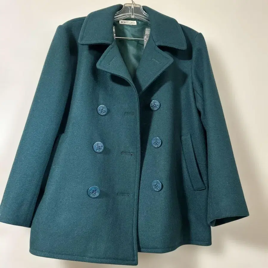 [ 미사용 ] 더블 버튼 피 코트 다크 그린