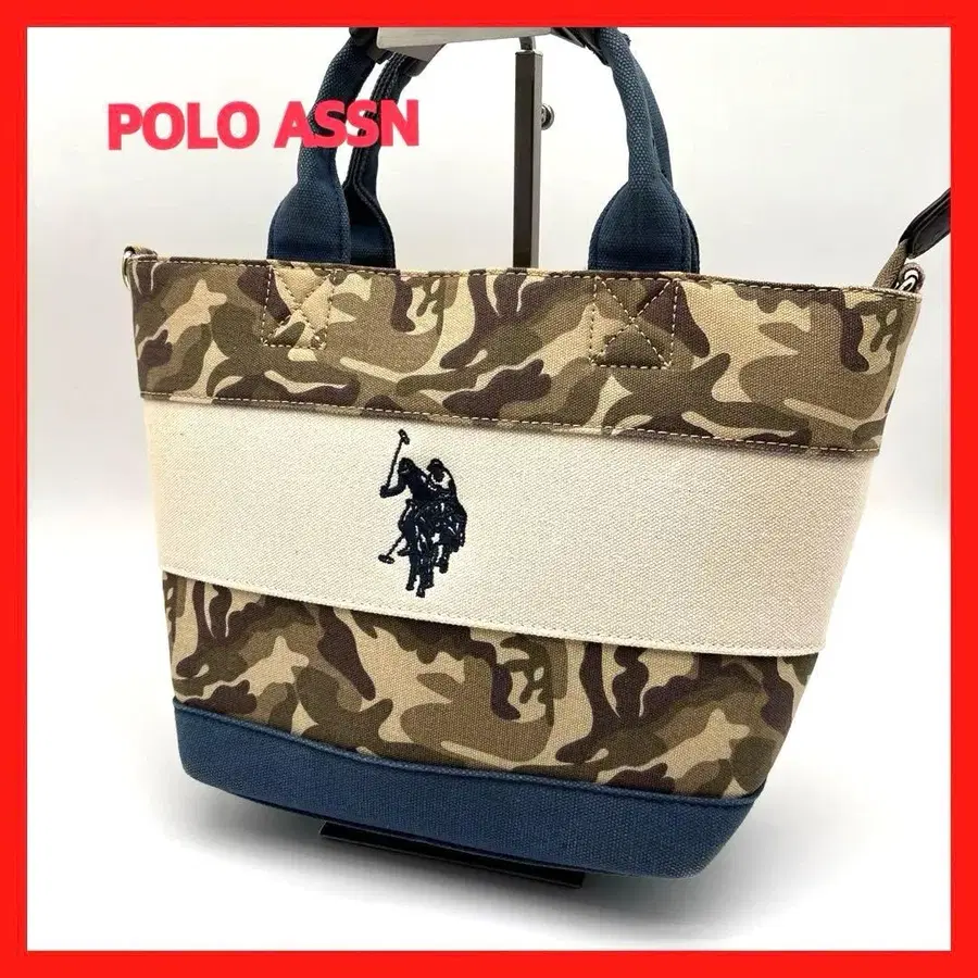 카모 패턴의 캔버스 핸드백, 자수 로고 포함.