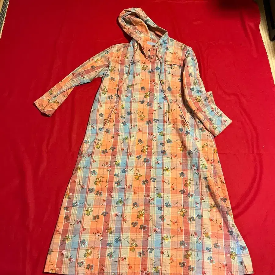 꽃무늬 체크 후드 부착 롱 원피스 구제 의류