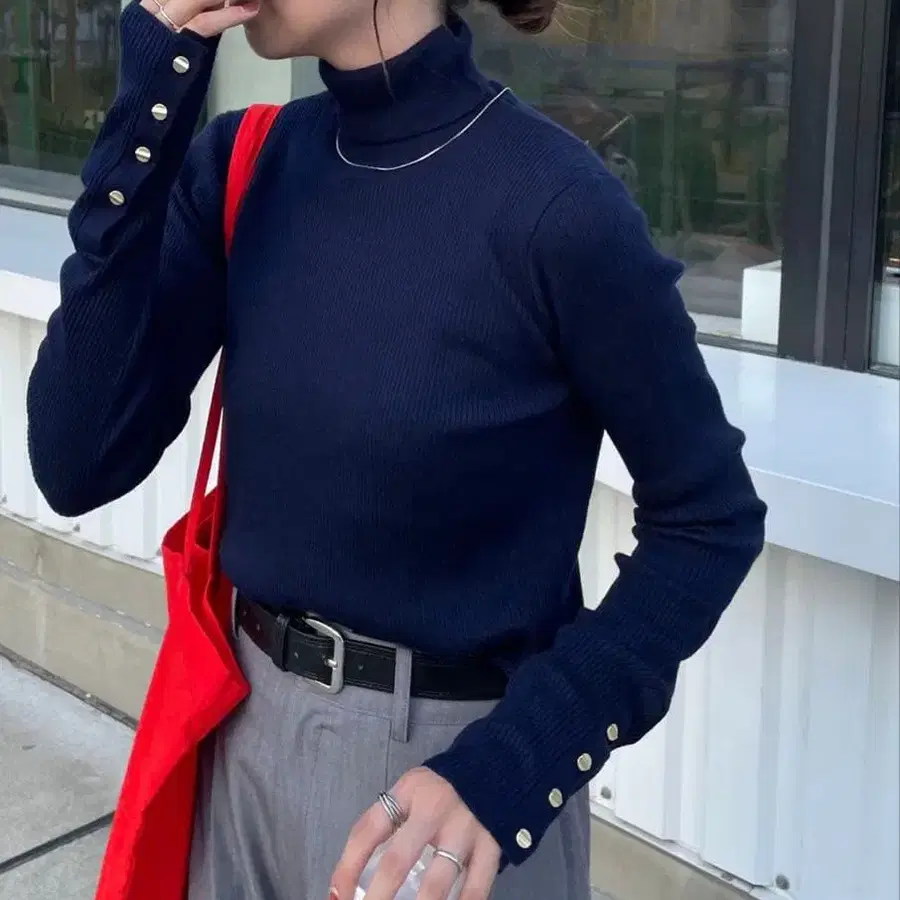 AMBIENT 핑거홀 터틀넥 니트