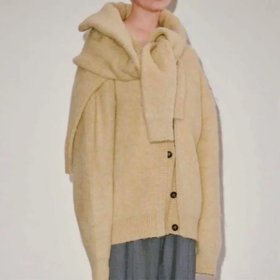 퓨어세신 샤기 니트 가디건 루즈핏 소매 베이지