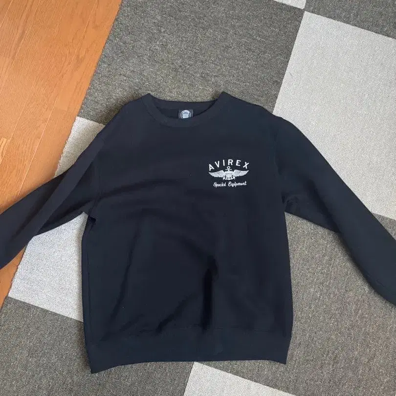 AVIREX 블랙 트레이닝복, 등 부분에 큰 로고와 패치 부착. AVIREX 맨투맨입니다. 11000엔에 매장에서 구매했으나 저에게는 어울리지 않아 판매하게 되었습니다. 미사용에 가까운 상품입니다. 즉시 구매 가능합니다!