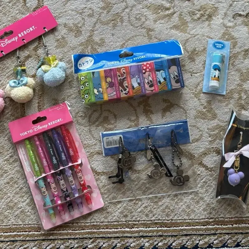 도쿄 디즈니 리조트의 캐릭터 굿즈 세트입니다. - 브랜드: 도쿄 디즈니 리조트 - 상품명: 프릭션 볼펜 5개 세트, 카도케시 8개 세트, 스트랩 3개 세트, 스트랩, 스트랩 4개 중 3개 세트, 립 크림 방문해 주셔서 감사합니다.