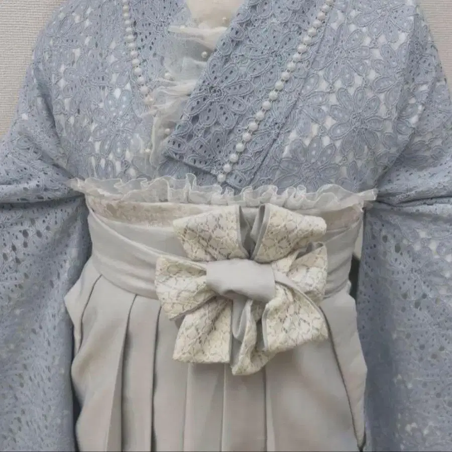 W81 기모노 이중 기모노 기장 155cm 화학 섬유 꽃 파랑